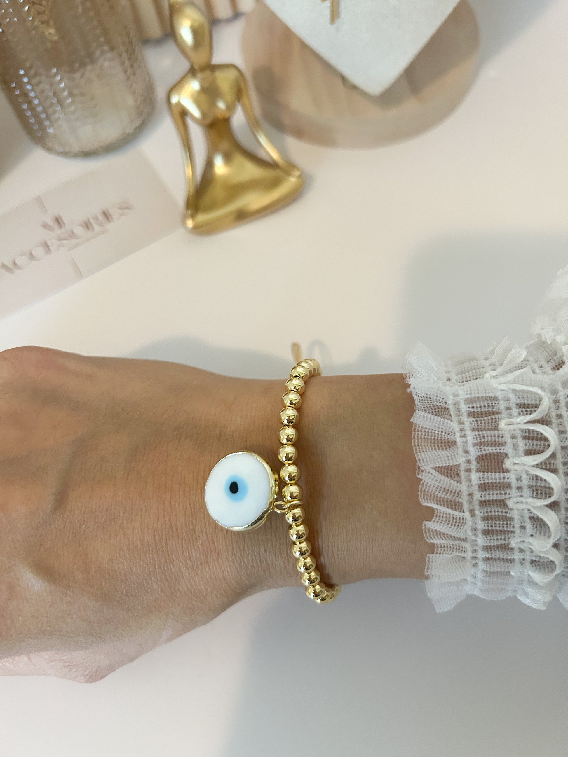 - Charm: Enamel evil eye in assorted colors