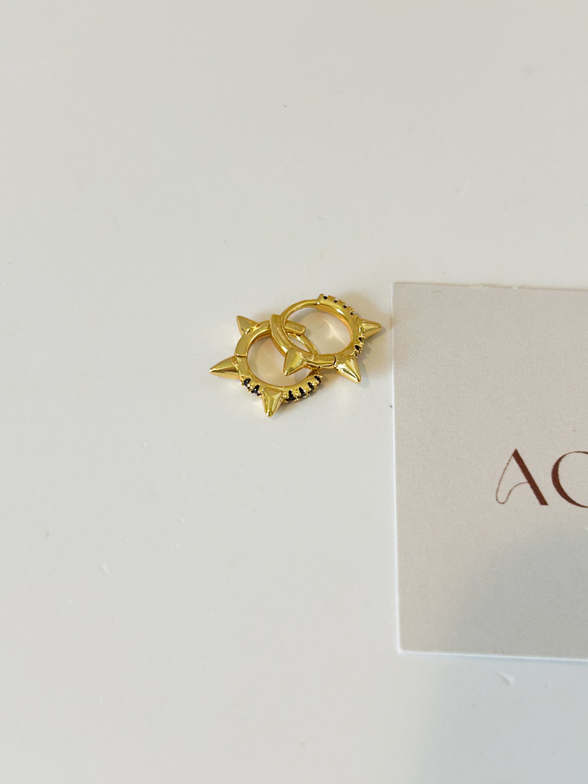 Our Fierce Hoops are the perfect blend of boldness and chic elegance. With a sleek golden finish, accented by striking spikes and black details, these hoops add just the right amount of edge to your look. Designed to stand out, they’re lightweight yet impactful—ideal for everyday wear or a night out.