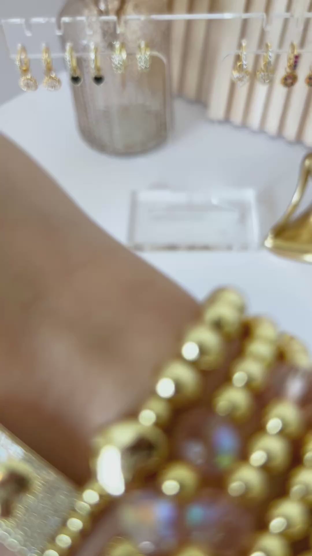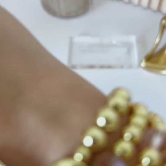 The Golden Shine Set features a stunning combination of 18K gold-plated beads, faceted crystal accents, and golden heart charms that capture light beautifully from every angle.