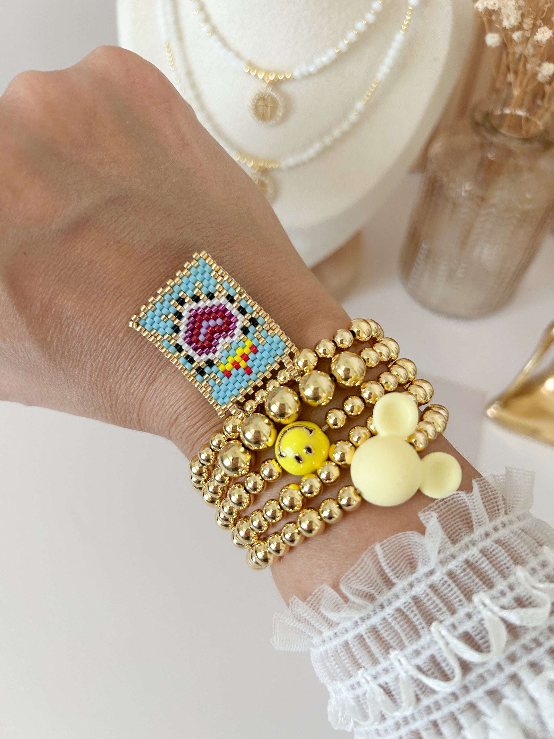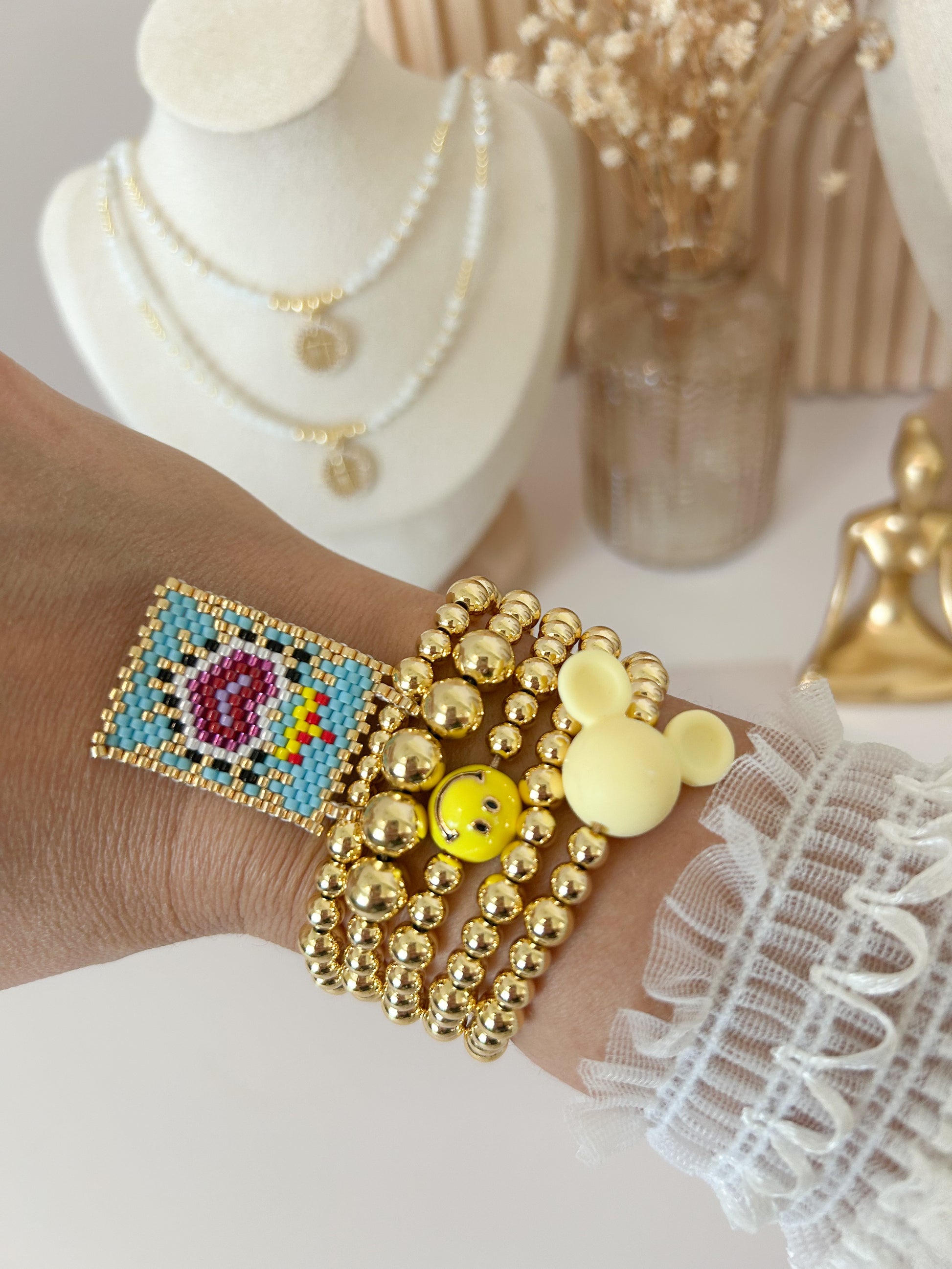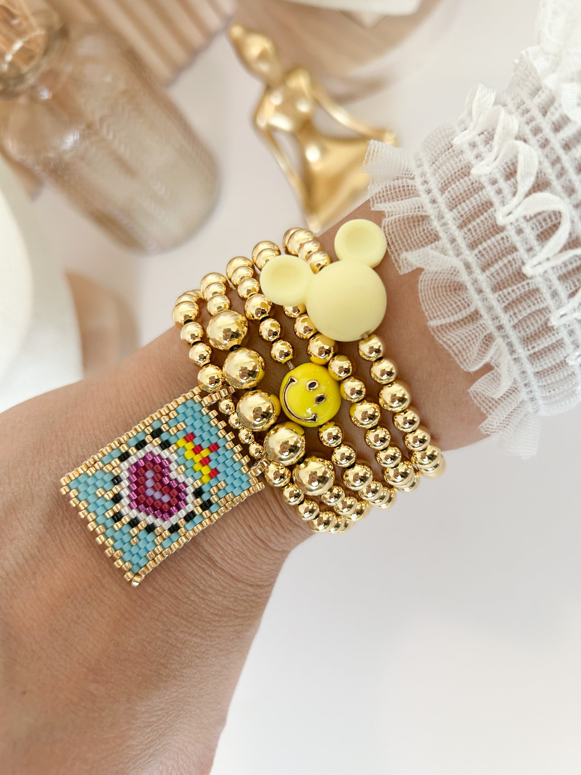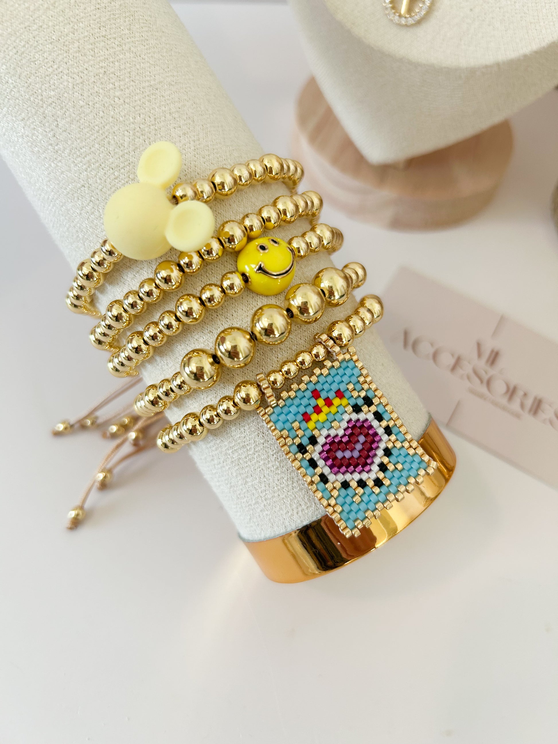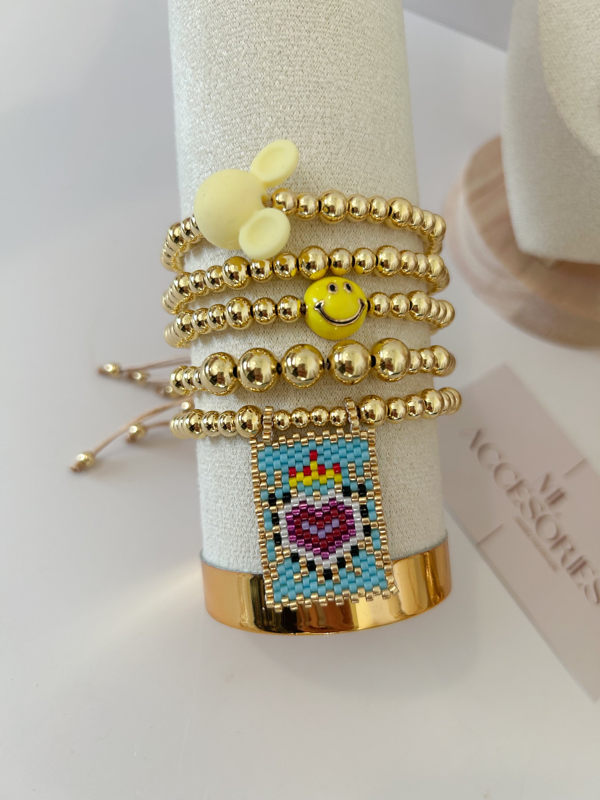 Brighten your day with our Happy Vibes Set. This playful stack combines 18K gold-plated beads, a cheerful smiley charm, soft yellow accents, and a handwoven heart beadwork bracelet for the perfect mix of fun, fashion, and good energy. Designed to make you shine and spread positivity everywhere you go.