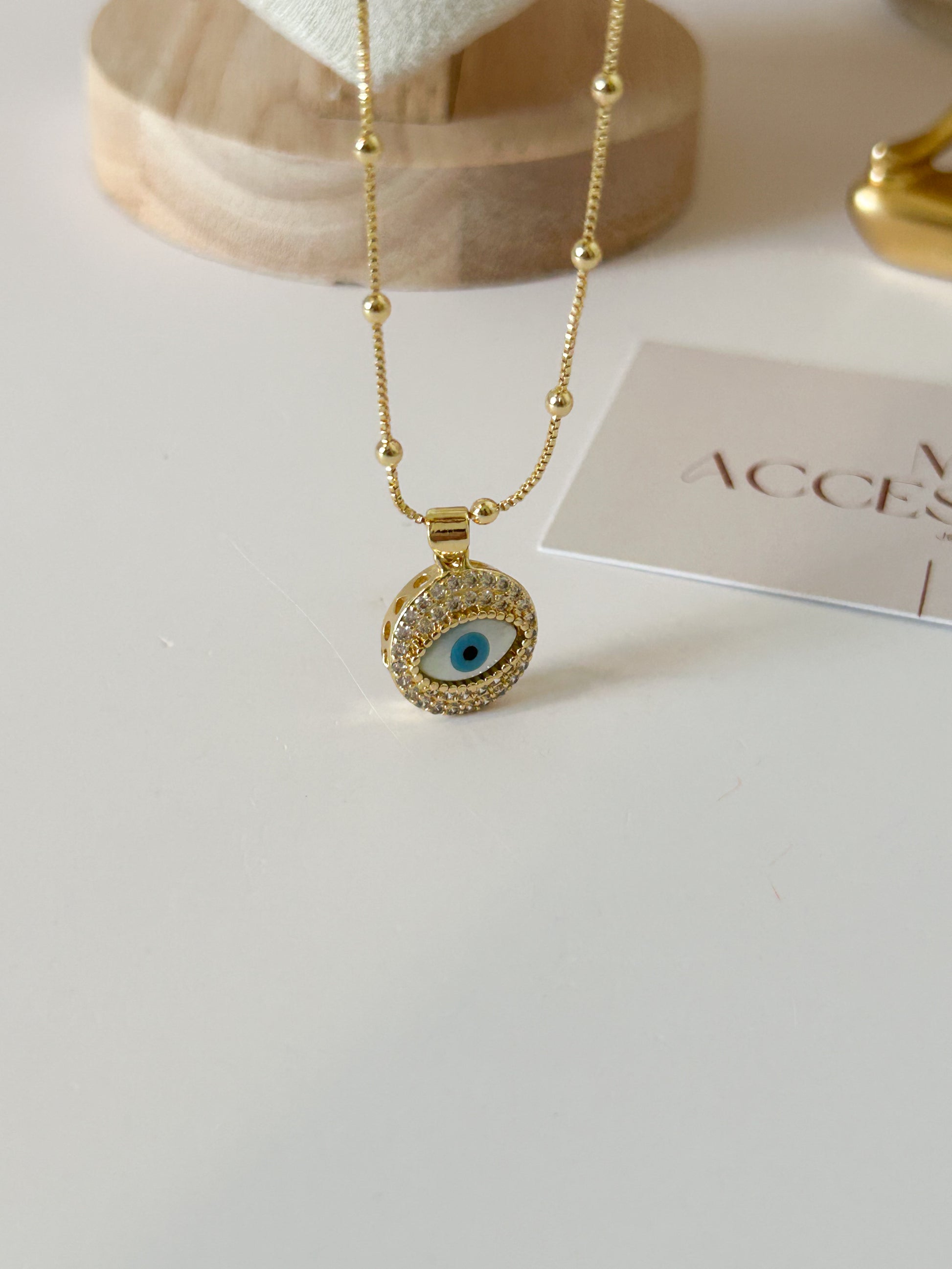A meaningful necklace featuring a sparkling Evil Eye pendant, symbolizing protection and positive energy. This timeless design is perfect for daily wear, keeping you stylish while carrying the ancient symbolism of good fortune.