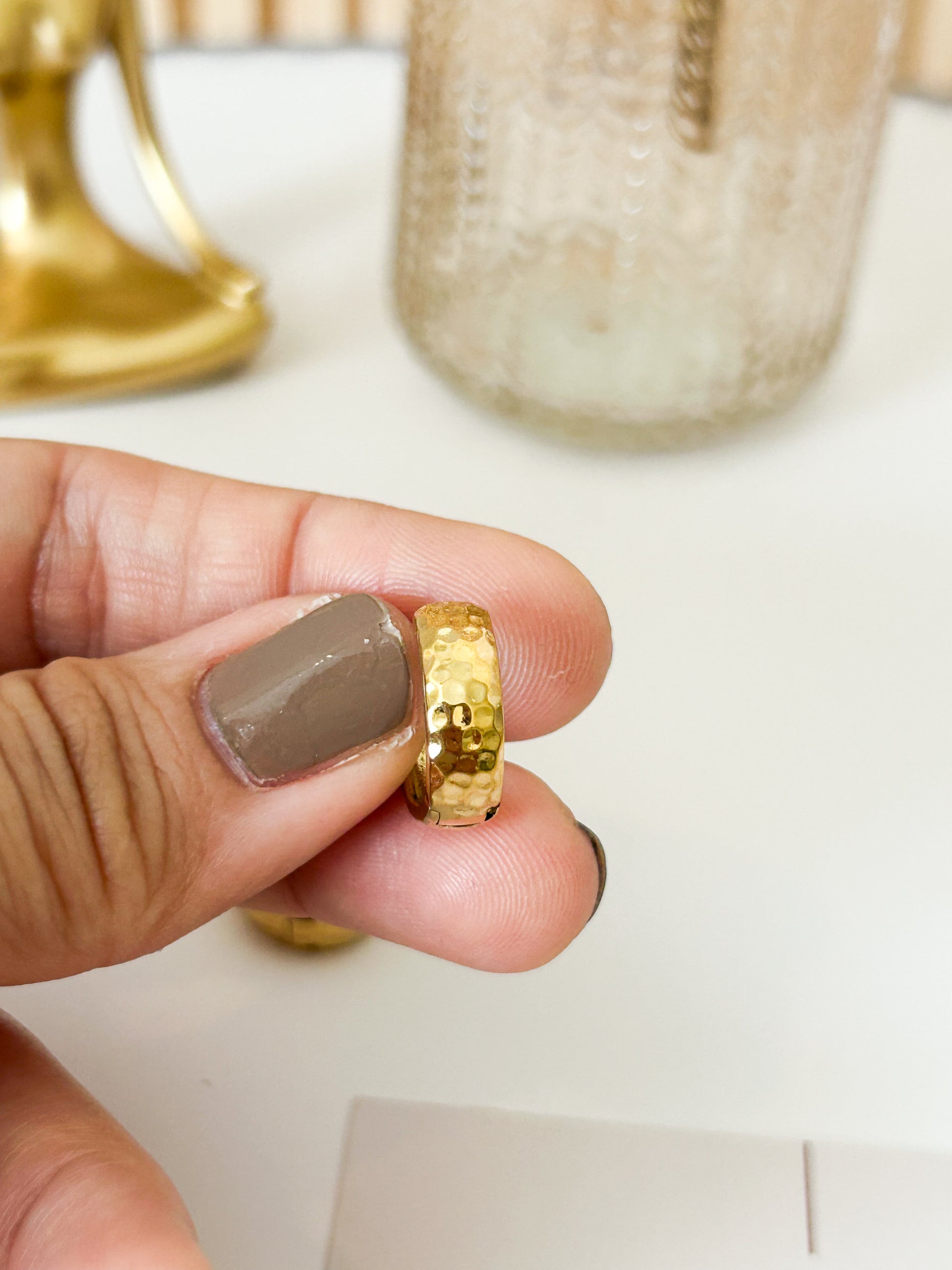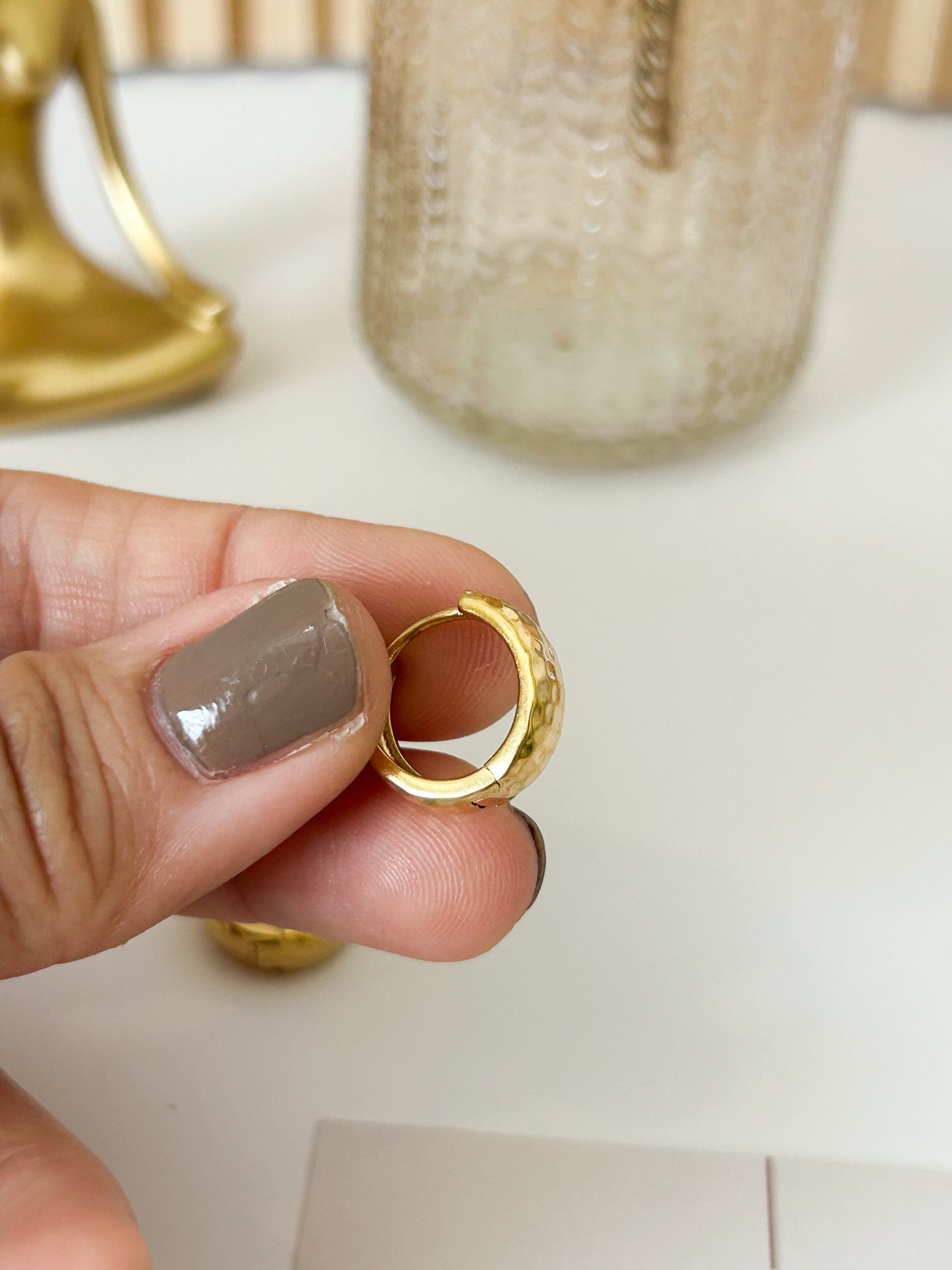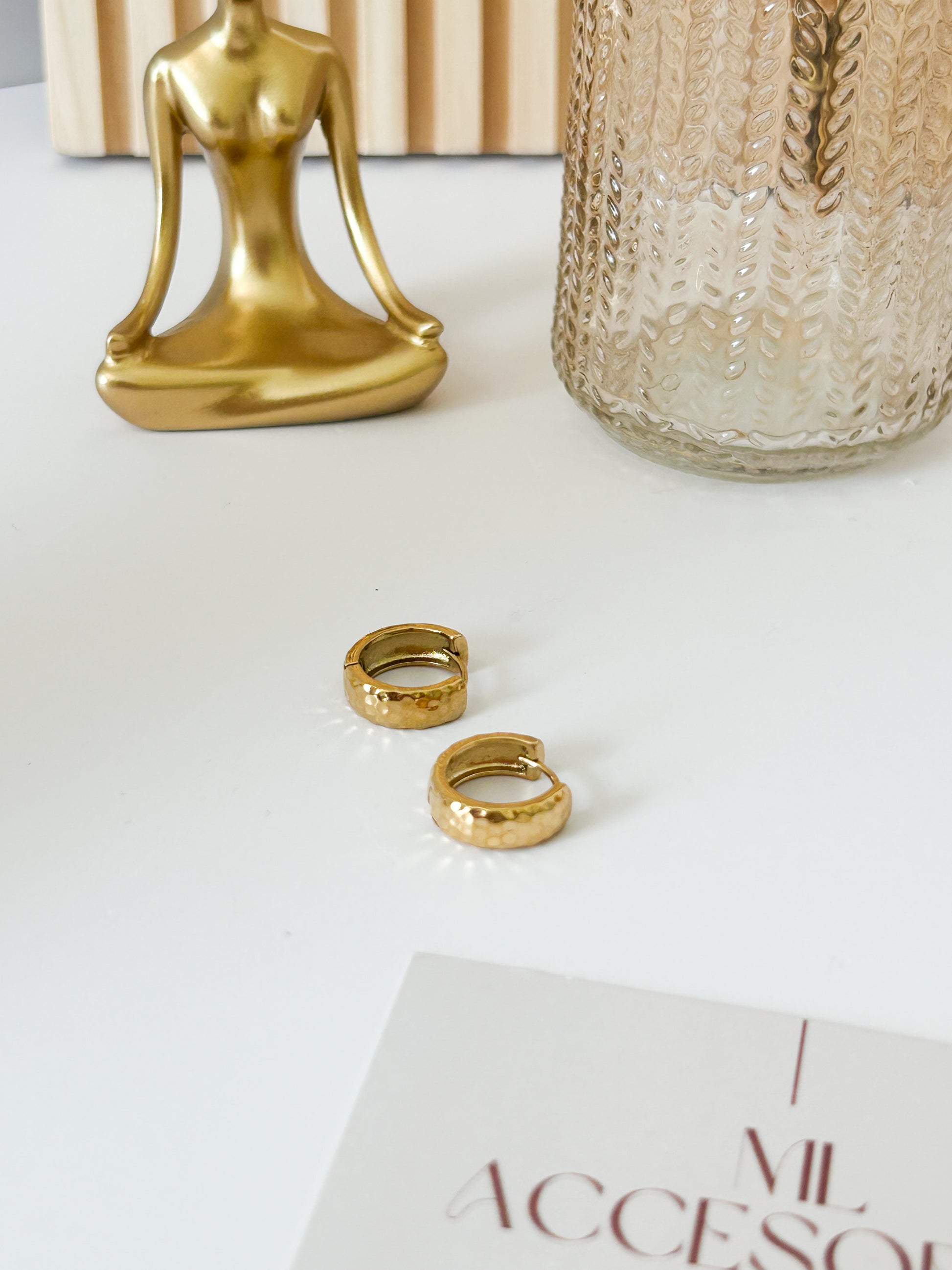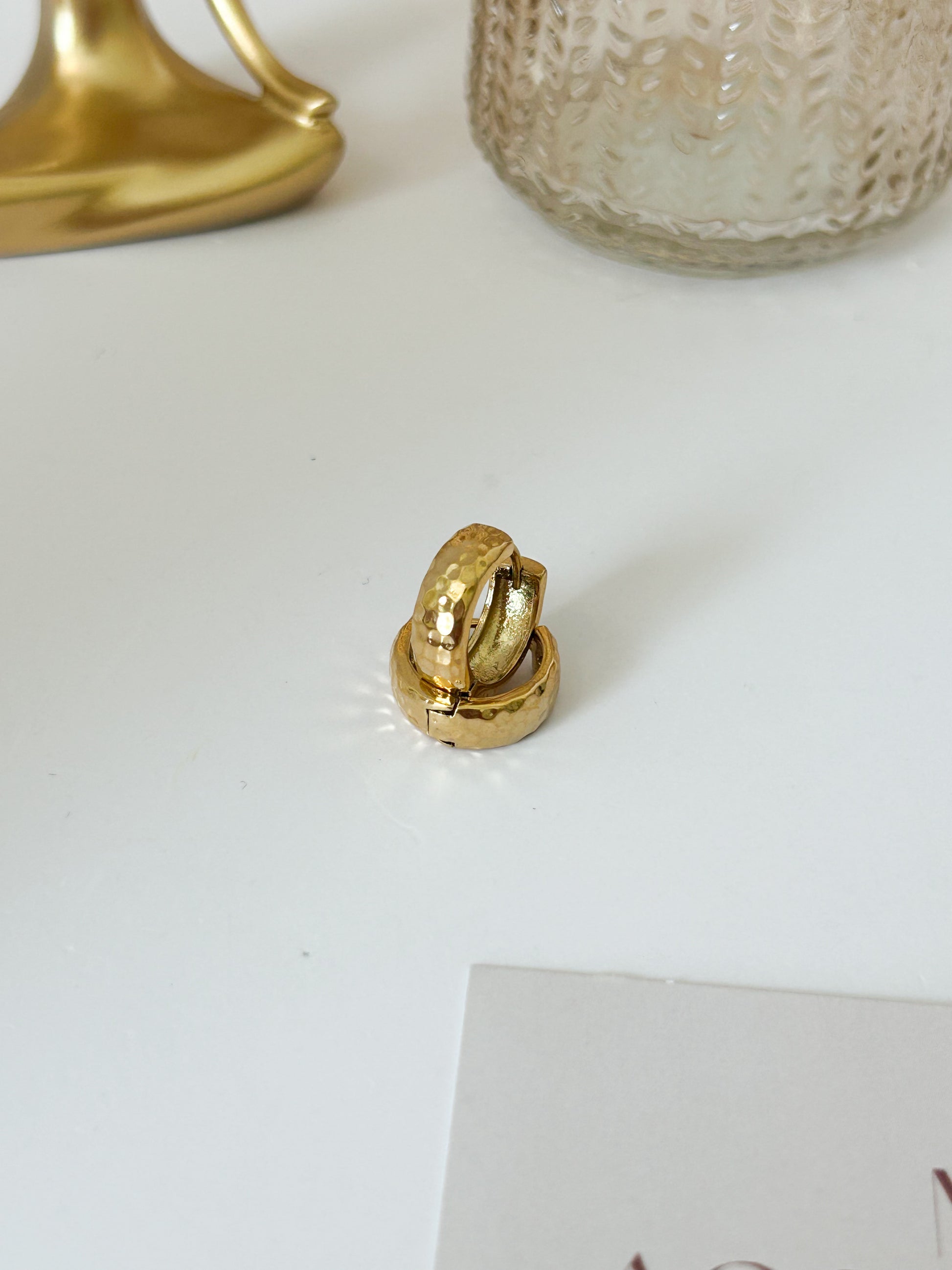 Shine with subtle texture in the Sol Hoops — a pair of gold-plated earrings with a hammered finish that catches the light with every move. These mini hoops are simple yet statement-making, offering a warm, handcrafted vibe for everyday wear or elevated looks.