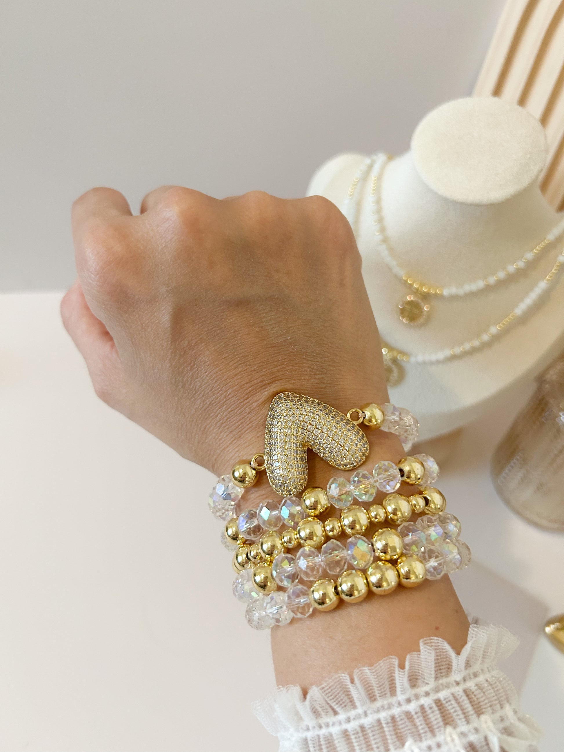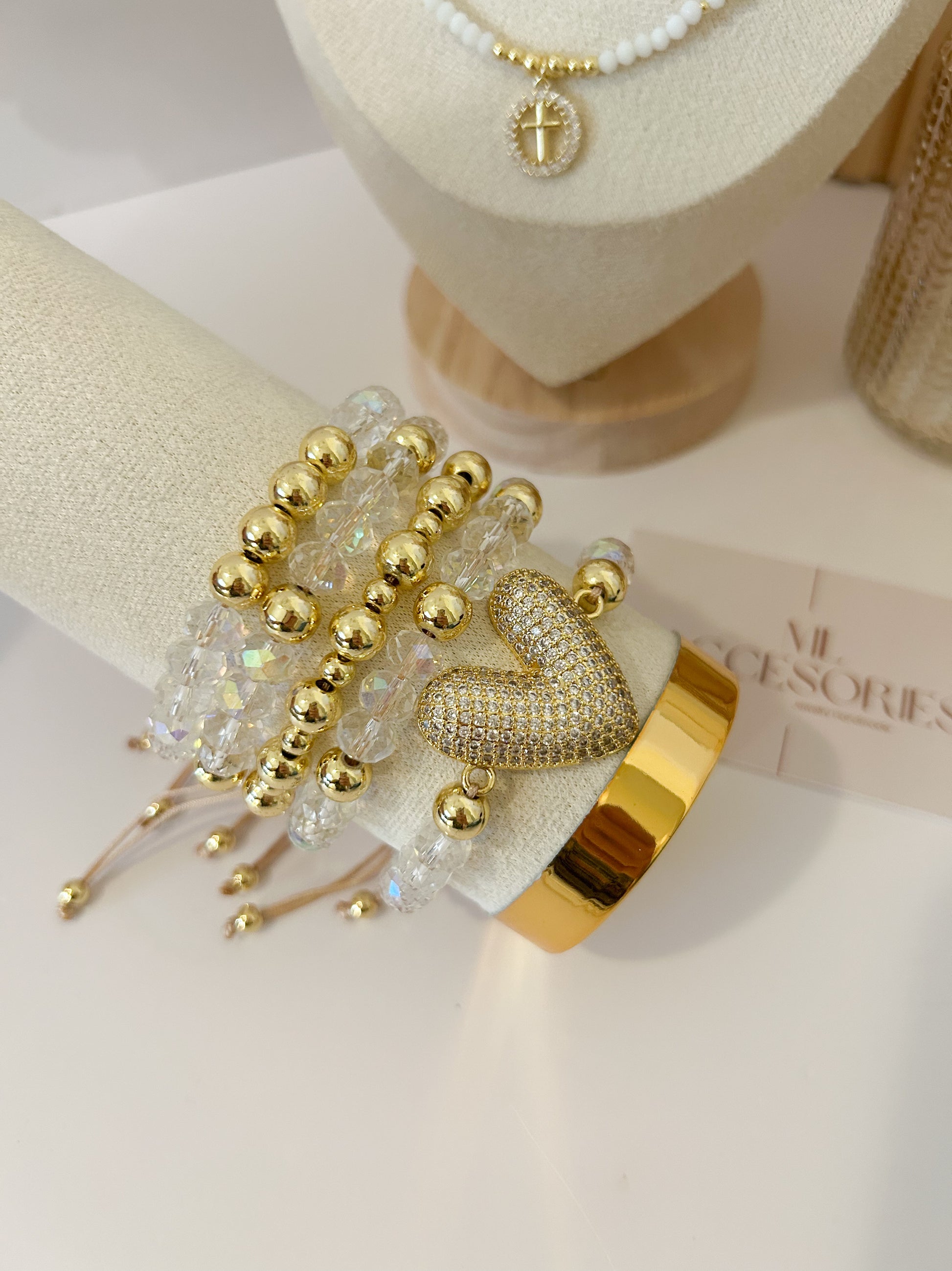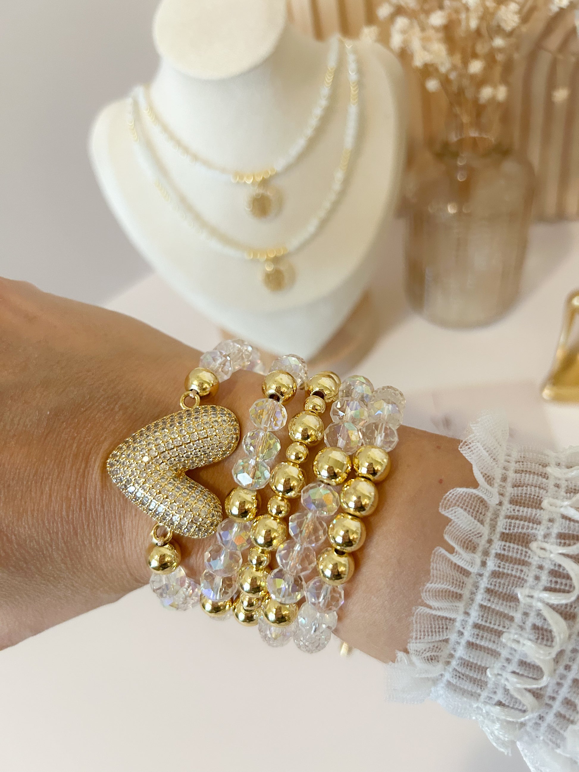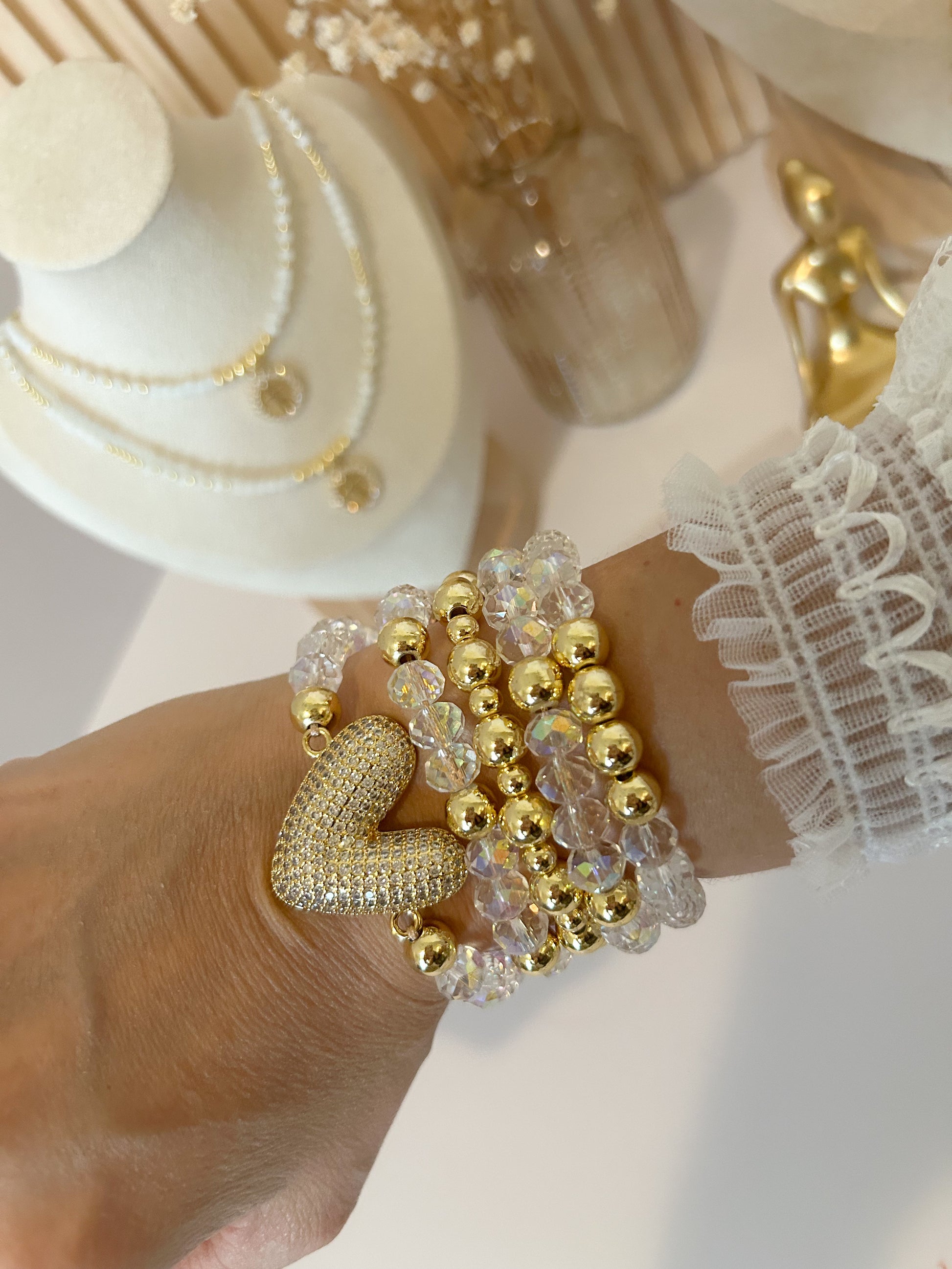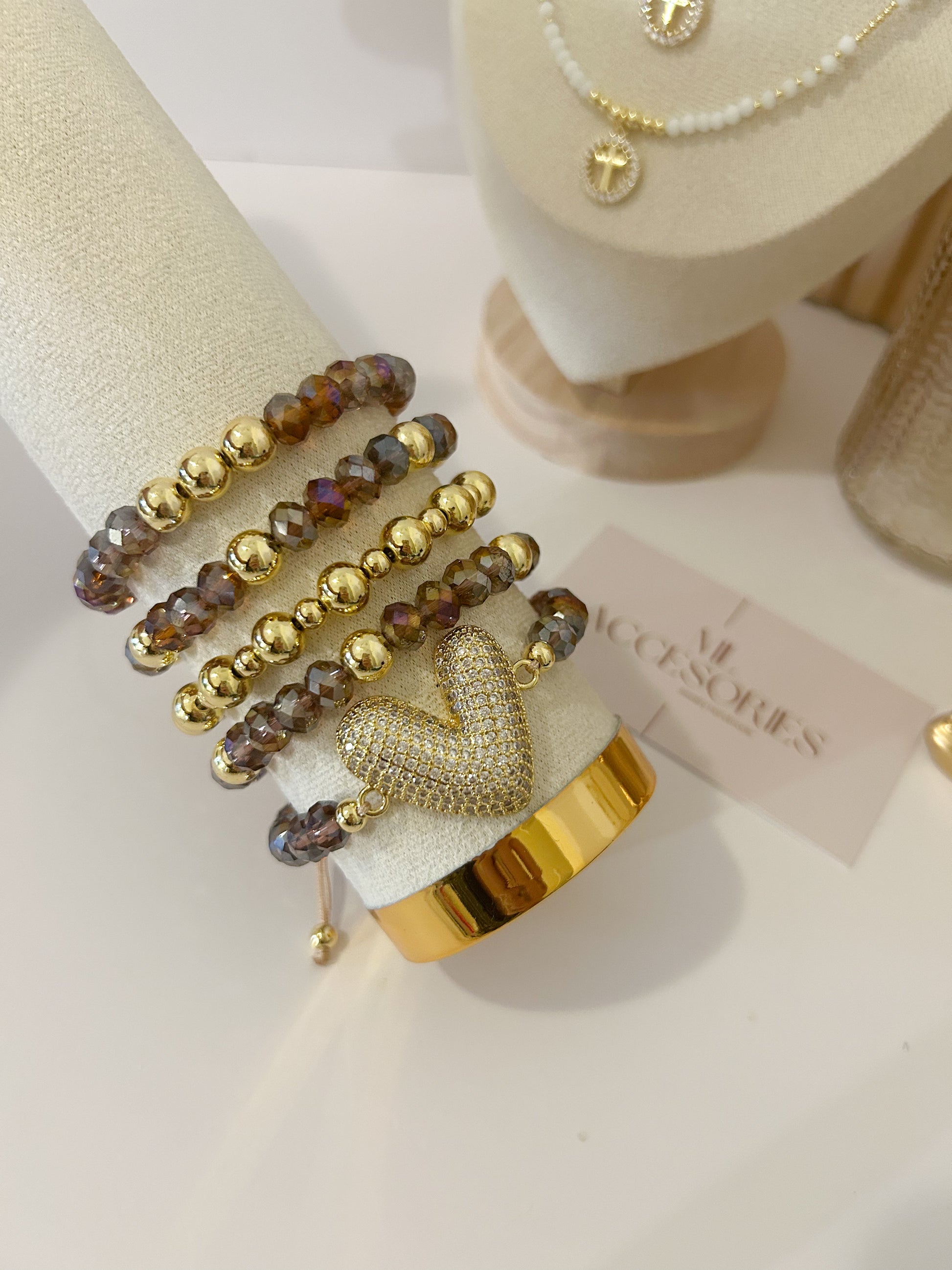 Timeless, bold, and irresistibly chic. The Sophie Clear and Brown bracelet set combines deep black faceted crystals with luxurious 18K gold-plated copper beads, finished with a sparkling crystal heart charm that steals the spotlight. A must-have for your most powerful looks.