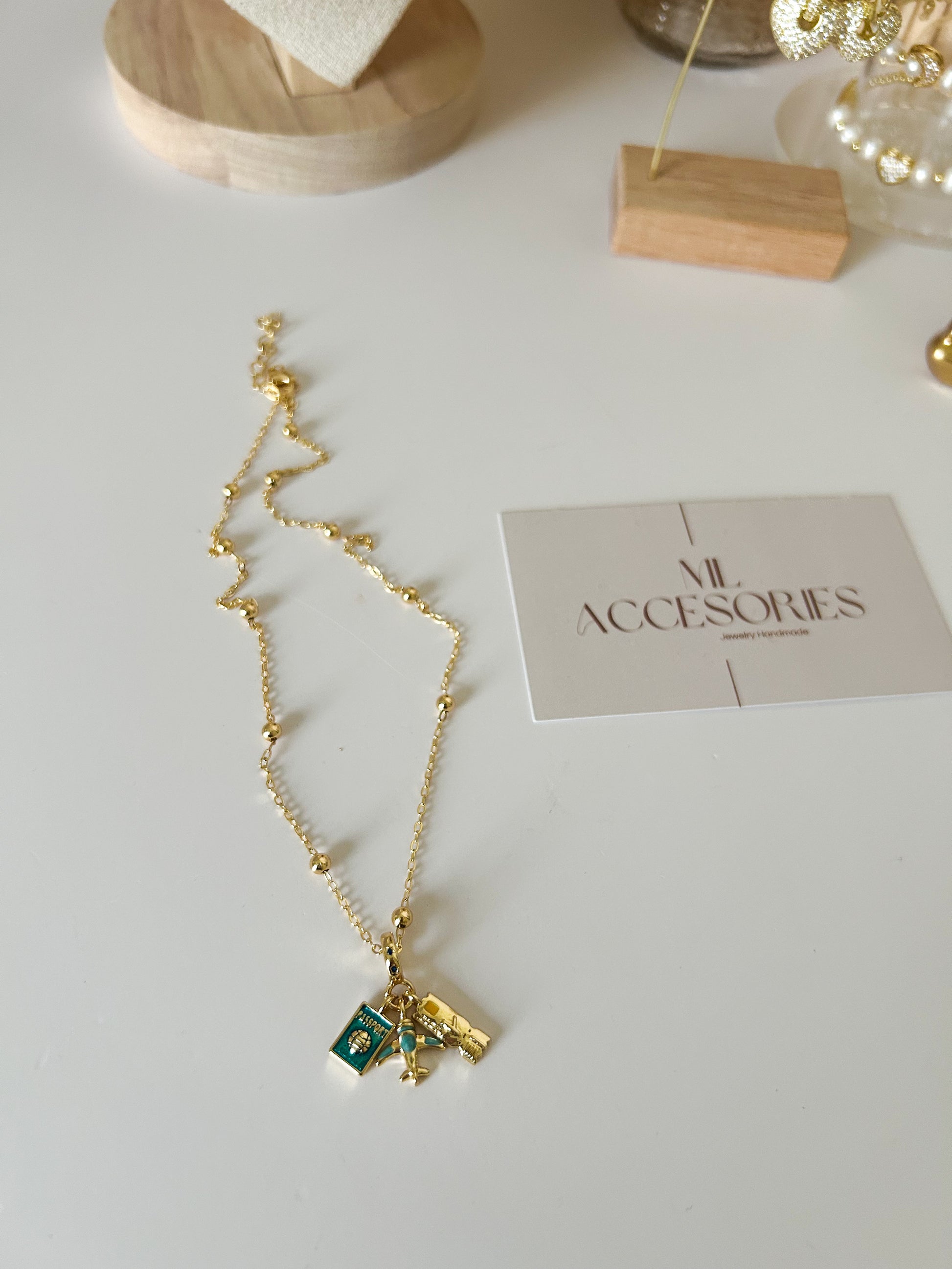 Carry the spirit of adventure close to your heart with the Viajero Necklace. This charm-filled piece celebrates wanderlust with symbols of exploration, curiosity, and the joy of discovering new paths. Elegant yet playful, it’s the perfect companion for dreamers and doers.